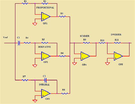 Electronic circuit implementation of an analog PID controller from www.researchgate.net